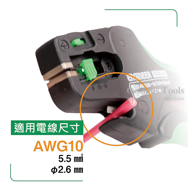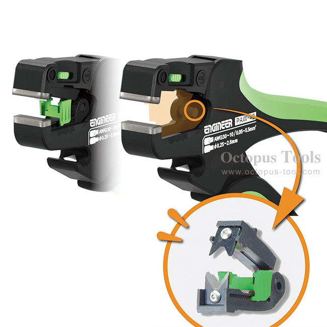 ◆ An automatic wire stripper that can strip a wide range of wire sizes(0.05 to 5.5 mm2) with one action, with its automatic adjustment function, you can strip without worrying about the wire size.