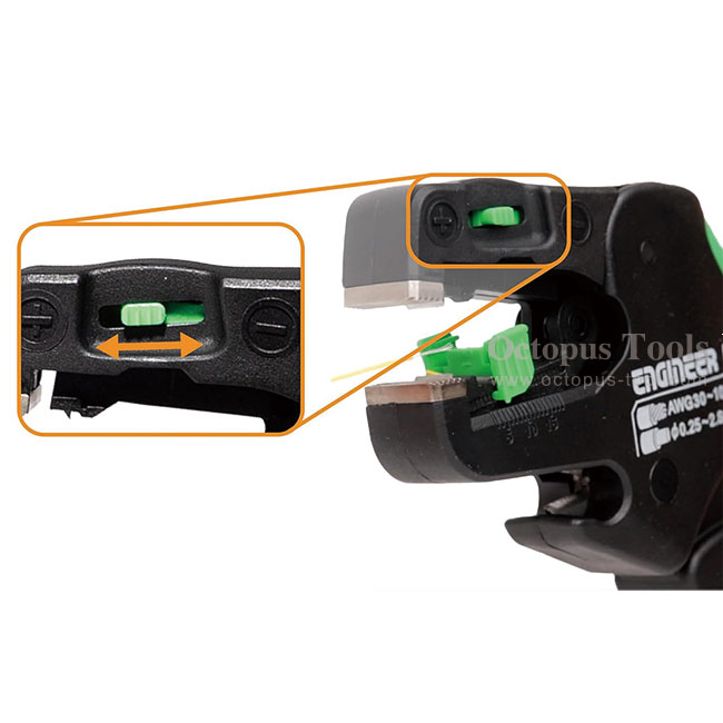 ◆ The length of insulation to be stripped can be adjusted by a strip gauge.